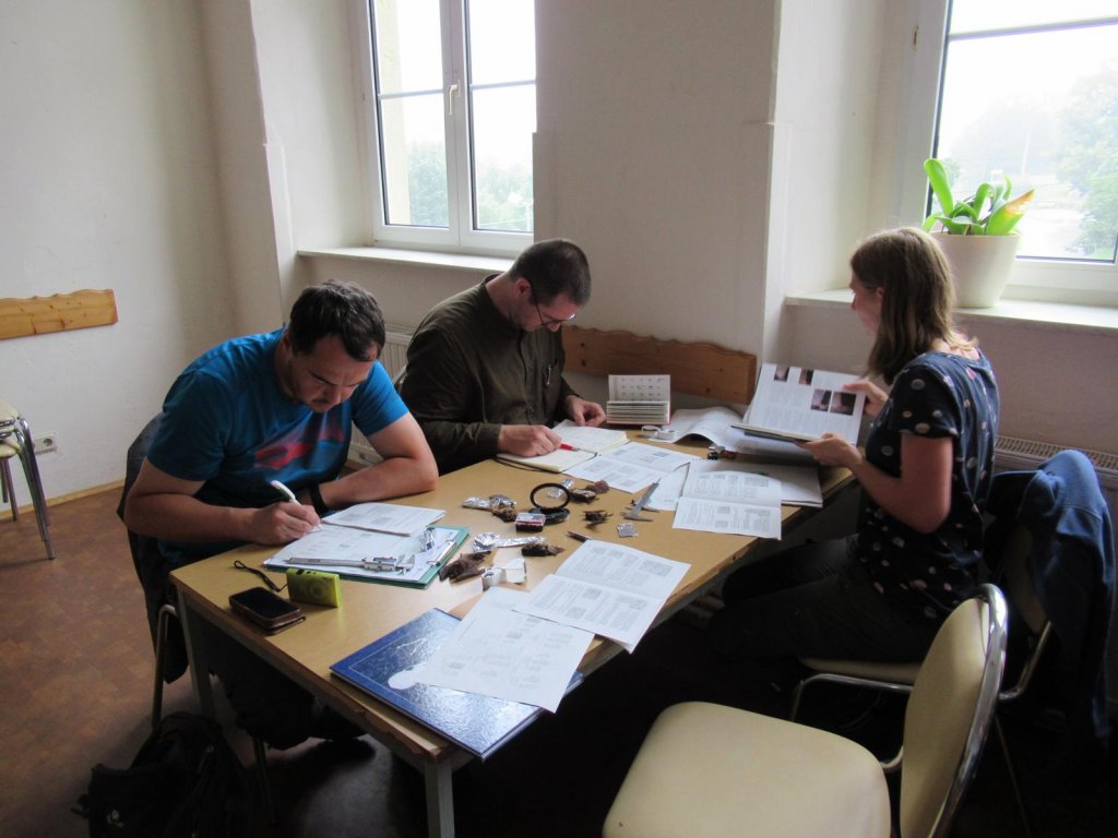 Die helle Tageshälfte wurde für die theoretische Wissensübermittlung sowie Bestimmungsübungen genutzt. Dr. Ulrich Zöphel zeigte anhand der Präparate von der Fledermausmarkierungszentrale Dresden auf was genau zu achten ist, wenn man eine Fledermaus in der Hand hält. Einen Einblick in die Bioakustik bot mittels Vortrag und Hörbeispielen Bianka Schubert. Als weiterer Praxisteil wurde ein Fledermausquartier in einer Kirche aufgesucht, um einmal zu zeigen wie die Hinterlassenschaften und Hangplätze im Gebälk aussehen. Ein Braunes Langohr und ein Mausohr versüßten zudem den Anblick im ohnehin warmen Dachboden. Klaus Püwert zeigte allen Teilnehmern im Umfeld der Lochmühle Langenau auf wofür er sich lokal engagiert aufgrund der bestehenden Waldveränderungen. Unterstützt wurden alle Unternehmungen sowie die Netzfänge durch Joachim Frömert – ehrenamtlicher Fledermausschützer im Landkreis Zwickau und Allrounder bei vielen sächsischen Fledermausquartieren.