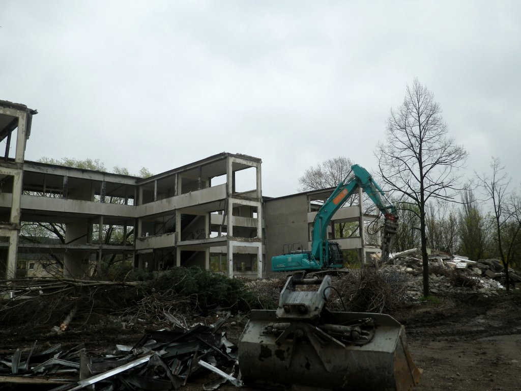 Ein ehemaliges Schulgebäude in Plattenbauweise beherbergte zahlreiche Fledermausquartiere, die nun durch den Abbruch wegfallen. | Foto: Bianka Schubert