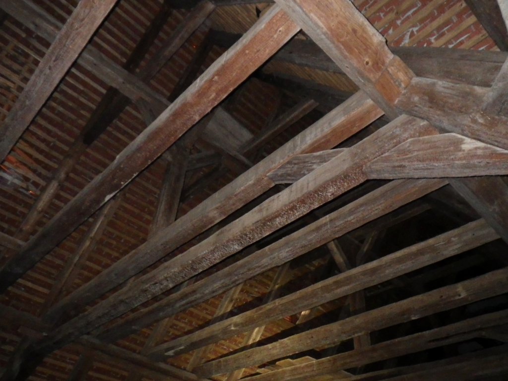 Weiße Kristallbildung am Gebälk eines Dachstuhls weist auf eine zurückliegende Behandlung mit Hylotox hin. | Foto: Bianka Schubert