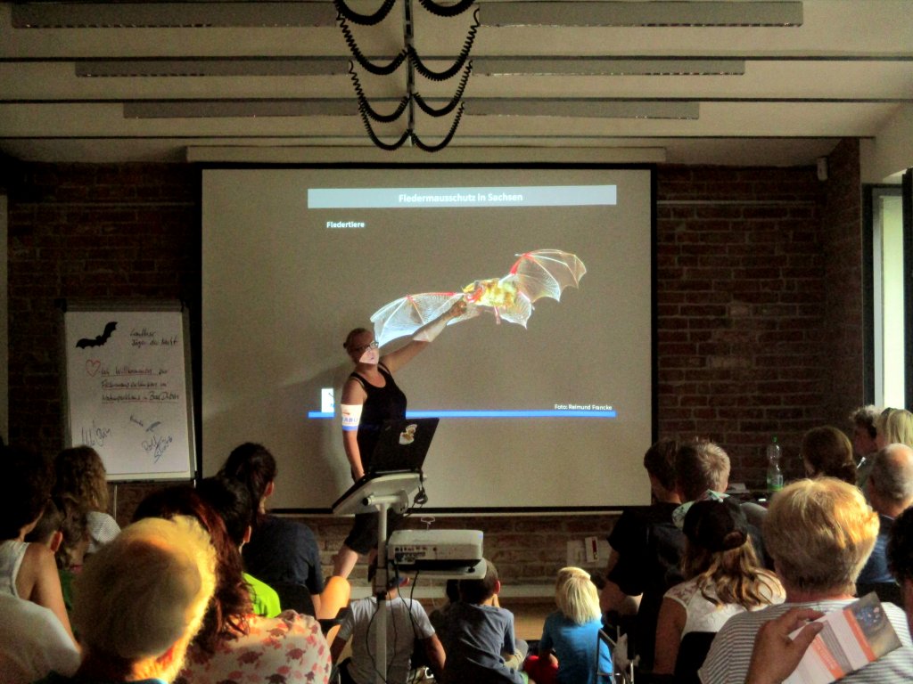 Fledermaus-Expertin vom NABU Sachsen Bianka Schubert führt die interessierten Zuschauer in die Welt der Fledermäuse ein | Foto: Ellen Männel