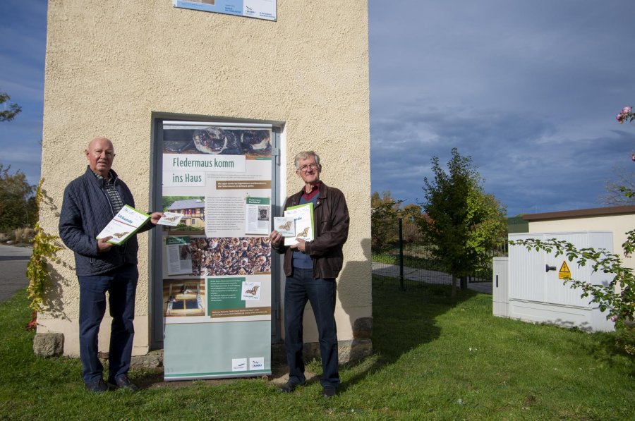 Vom NABU mit der Plakette „Fledermaus komm ins Haus“ geehrt: Claus Butze und Dieter Gabler. | Foto: Ina Ebert