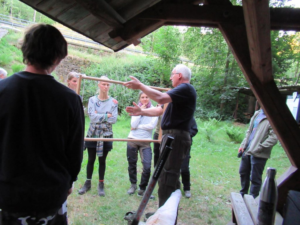Joachim Frömert erläutert zum Bestimmungsseminar die verschiedenen Fangmethoden: hier eine Harfenkonstruktion. | Foto: Bianka Porschien