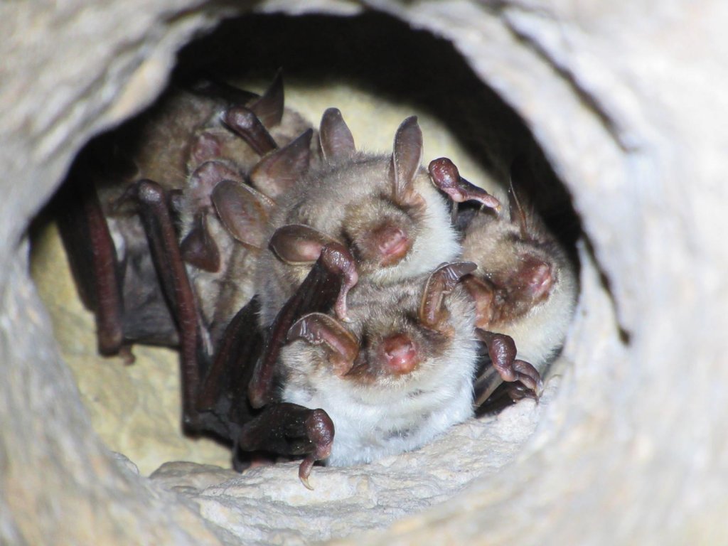 Bei einer der Winterquartierkontrollen in der Sächsischen Schweiz bot sich dieses Bild schlafender Mausohren im Cluster. | Foto: Bianka Porschien
