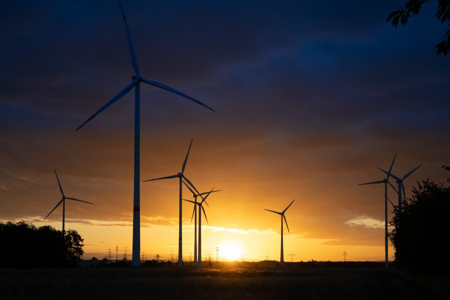 Windpark mit Sonnenaufgang. | Foto: Marco Roßner