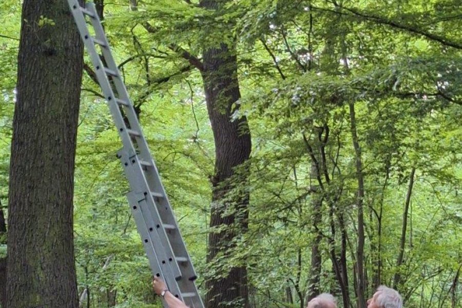 Neue Kästen für Fledermäuse werden im NSG „Waschteich Reuth“ angebracht. | Foto: Sarah Vögele