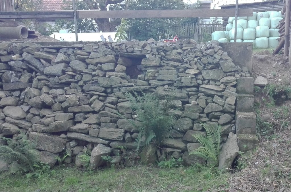 Mit angefallenen Baumaterialien wie Eisenträgern und Betonplatten wurde das oberirdische Silo abgetragen und eine neue, mardersichere Deckenkonstruktion geschaffen. Diese Decke aus Holzbeton bietet sowohl freihängenden Arten (wie dem Großen Mausohr) durch die nicht verdichtete Struktur als auch spaltenbewohnenden Arten über vier aufgehängte Fledermauskästen einen Schlafplatz. Die Konstruktion wurde absichtlich mit 50 cm Erde überdeckt, ohne abzudichten, um die nötige Erdfeuchte zu bewahren.