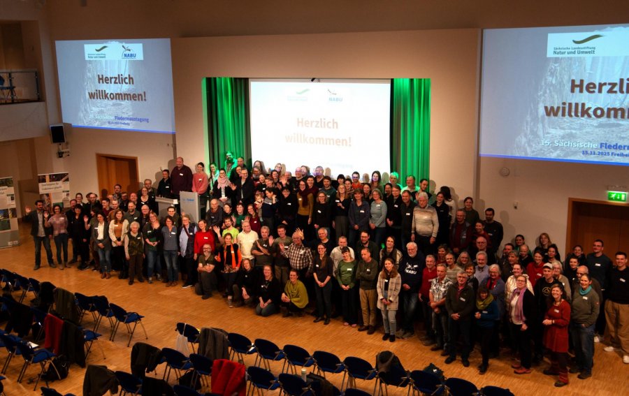 Im November 2025 stand das nächste Jahreshighlight an: die 15. Sächsische Fledermaustagung des LFA in Freiberg. Trotz einiger Absagen wurde zu dieser Veranstaltung die noch nie dagewesene Anzahl von 140 Teilnehmenden erreicht. Das breit gefächerte Publikum mit Personen aus Ehrenamt, Behörden, Planungsbüros, Landschaftspflegeverbänden, LMBV, LISt, Deutscher Bahn u.a. zeigte einmal mehr, dass das Thema Fledermausschutz verschiedenste Interessensgruppen betrifft.