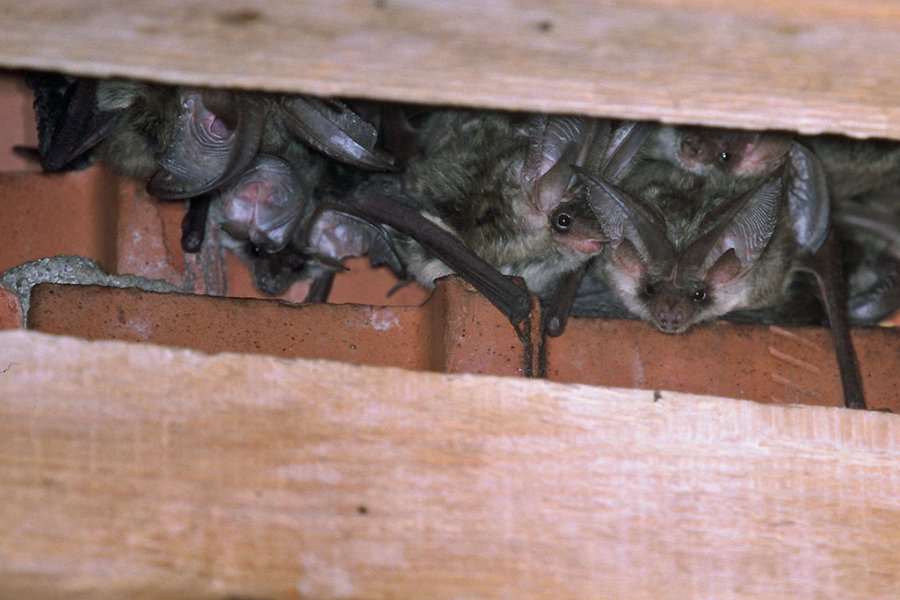 Wochenstube vom Grauen Langohr im First eines Dachbodens | Foto: Elke & Reimund Francke