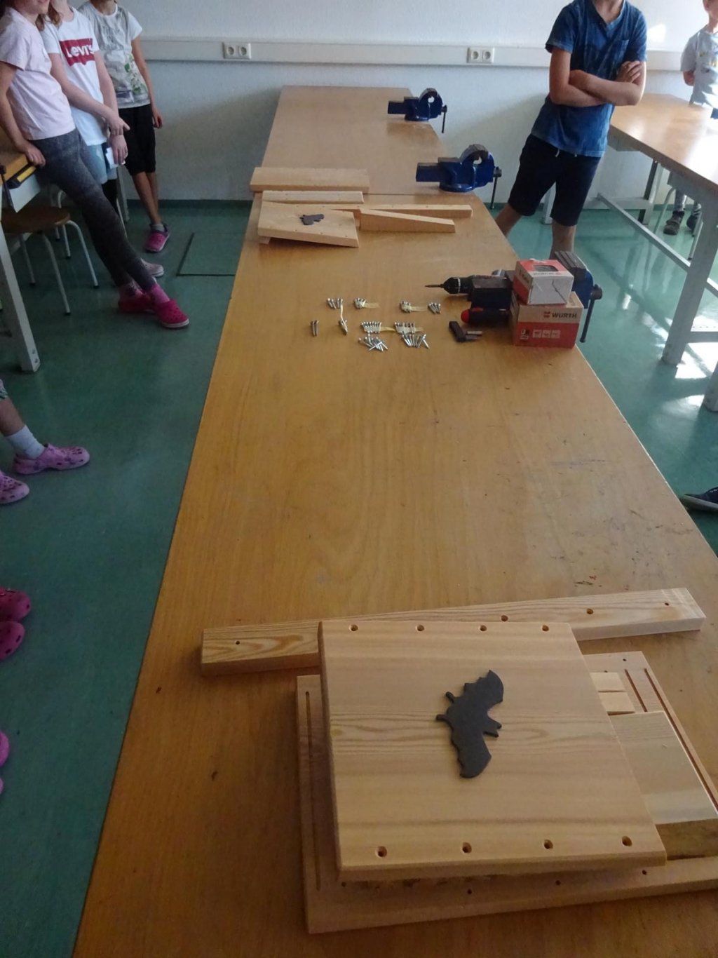 Zwei Fledermauskästen wurden als Gruppenarbeit im Werkraum durch die Klassen 4a und 4b selbstständig zusammengebaut. | Foto: Bianka Schubert