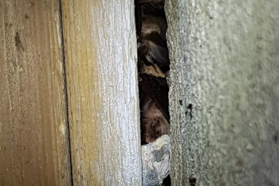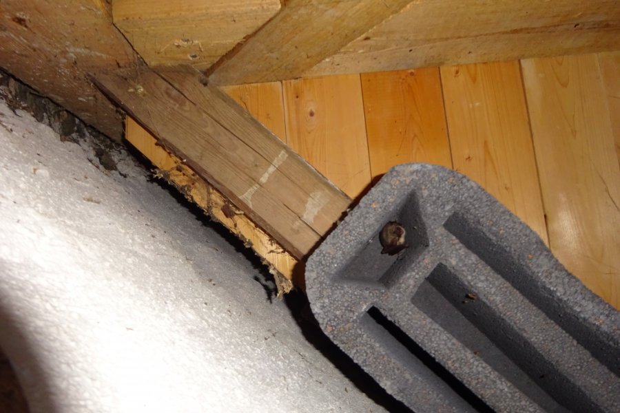 Im Deckenspalt einer Dresdner Kirche haben fünf Braune Langohren Ende März wieder Quartier bezogen | Foto: Thomas Frank