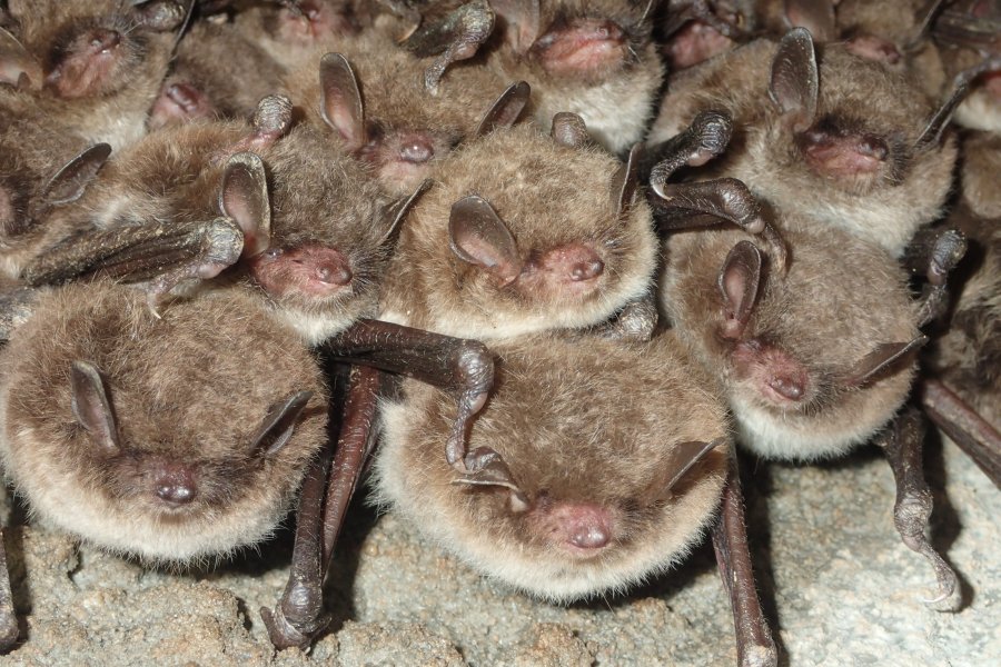Seltener Anblick: Zahlreiche Wasserfledermäuse sammeln sich während der Abwanderungsphase nahe dem Eingang vom Winterquartier. Darunter befinden sich auch einzelne Tiere der Fransenfledermaus und des Mausohrs. | Foto: Ulrich Zöphel